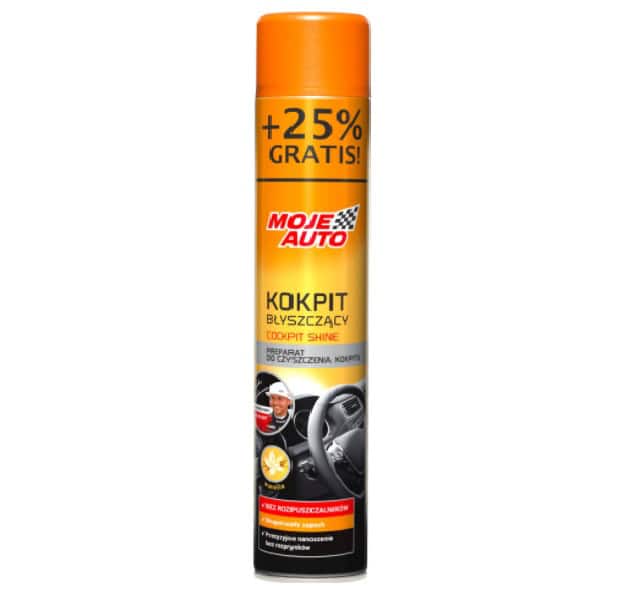 Кокпит спрејот со мирис на ванила обезбедува чиста и сјајна површина во ентериерот на возилото со пријатен мирис.