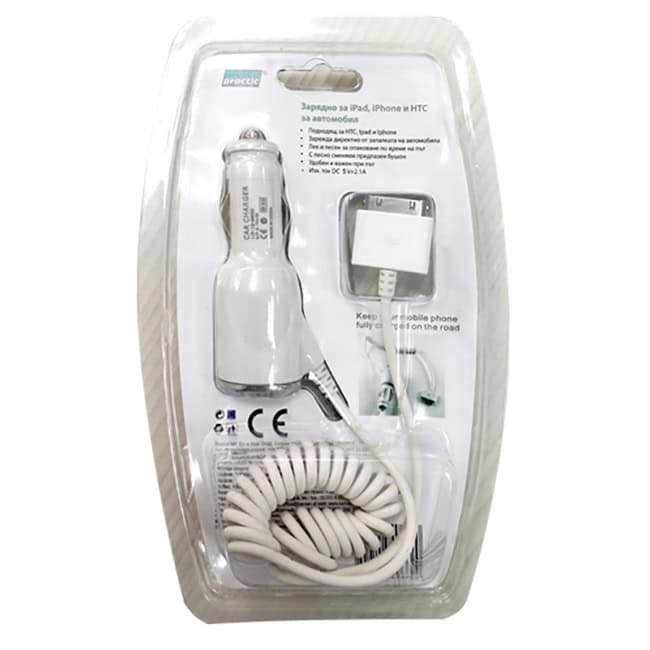 Начин на употреба: Поврзете го полначот во автомобилскиот приклучок (12V/24V) и поврзете го уредот со 30-пинскиот конектор за Apple уреди или соодветниот HTC конектор. Полнењето започнува веднаш, овозможувајќи брзо и безбедно надополнување на батеријата додека сте на пат.