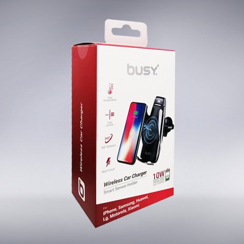 Busy® Wireless Car Charger Holder поддржува брзо полнење (Fast Charge) и е компатибилен со сите Qi-поддржани уреди, вклучувајќи ги најновите модели на Android и iPhone. Монтажата е едноставна – може да се постави на вентилациски отвор, шофершајбна или табла.