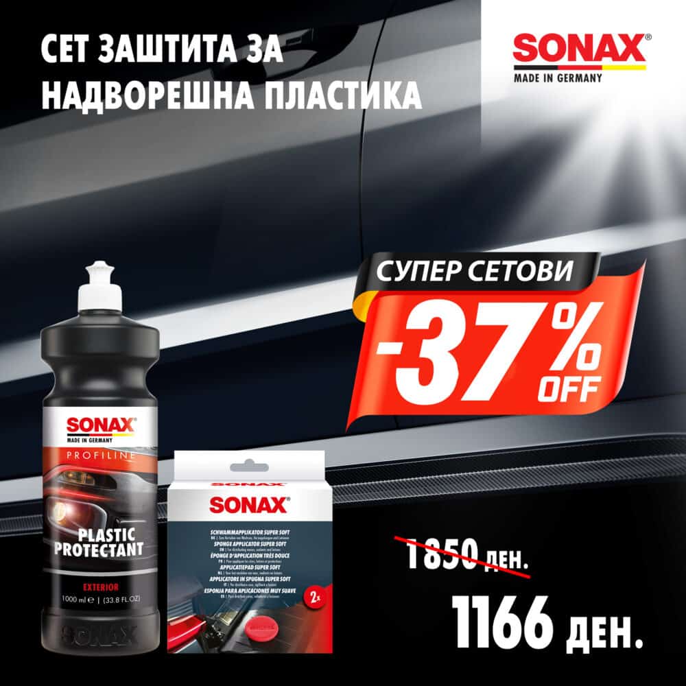 SONAX сетот е погоден за сите видови надворешна пластика – мат, сјајна или структурирана. Со редовна употреба, обезбедува долготрајна заштита и свеж изглед на автомобилот.