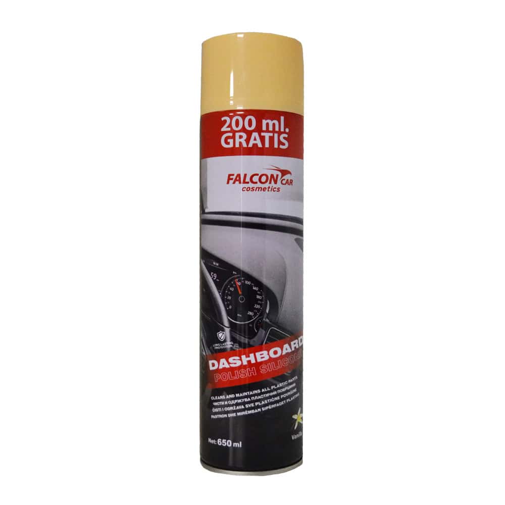 Исчистете ја и заштитете ја пластиката во вашиот автомобил со Falcon Car Dashboard Polish. Ефикасен силиконски спреј за салтабла со долготраен сјај и свеж мирис на лимон. Спречува пукање и избледување. Купете со +200ml гратис!